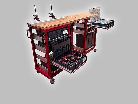 Wir fertigen die passende Transportlösungen für Ihr Koffersystem. Als Rollwagen oder fahrbare Werkbank - wir machen Ihr Koffersystem mobil.
